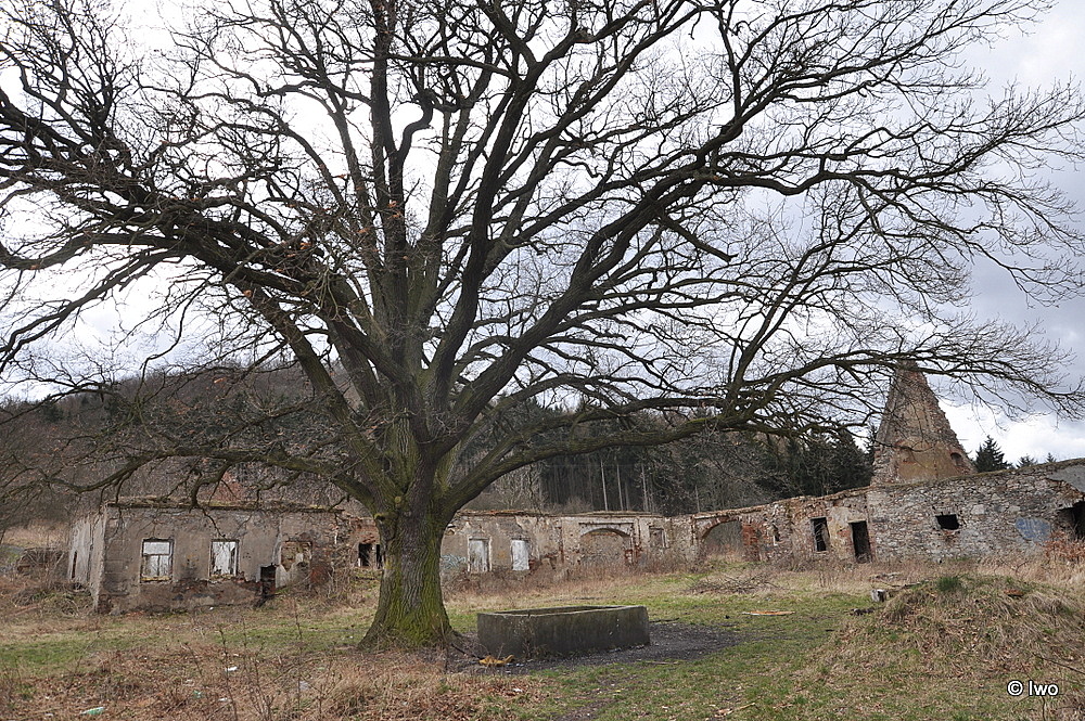 V sedle pod hradem Šumburk se nachází zřícenina bývalé tvrze z 16. století, později přebudovaná na panský dvůr. Po druhé světové válce byl dvůr znárodněn a začal chátrat. Dnes zde najdete zbytky obvodových zdí a kleneb, mezi nimiž roste 250letý dub. Pamatuje napoleonské války, revoluci v roce 1848 i obě světové války. Jeho majestátní koruna je také častým motivem pro fotografy.