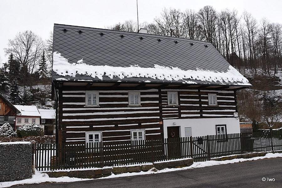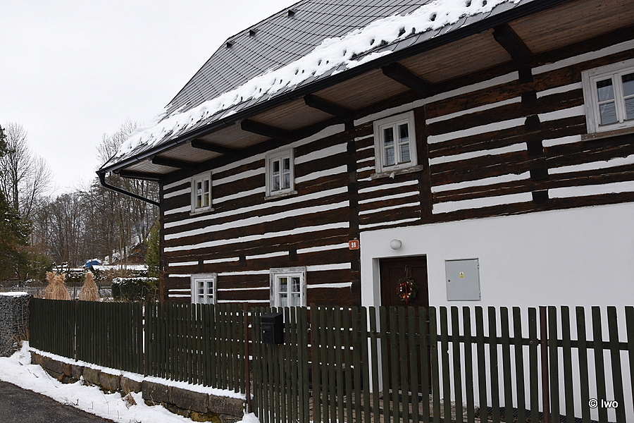Patrový, převážně roubený dům, s částečně zděným přízemím a se štíty s ozdobně sesazovanými lištami, pochází z 2. poloviny 18. století. Dům, který nalezneme ve středu obce, je zajímavý mimo jiné bohatě vyřezávaným okřídlím oken ve štítovém průčelí.