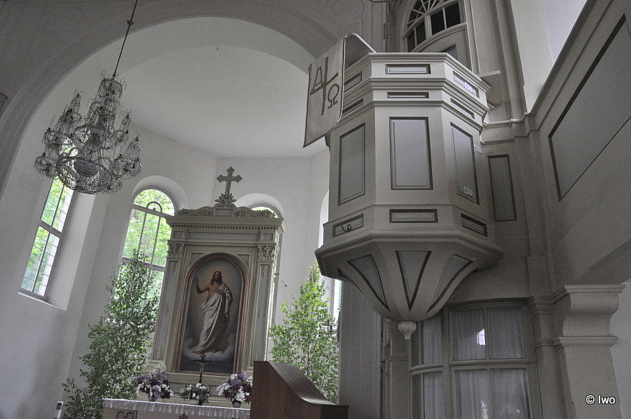 Oltář a kazatelna byly vyrobeny mistrem tesařem Brückholdtem z Neugersdorfu podle vzoru ze Steinigtwolmsdorfu – jen menší a jemnější.