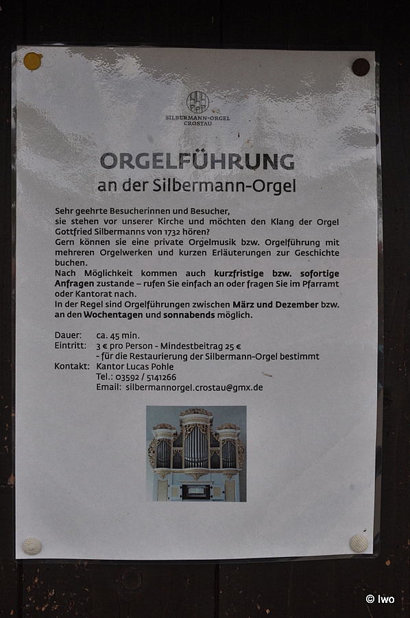 V roce 2016 jsme zrovna trefili výjimečnou dobu: „Místní nástroj vyráběl slavný varhanář Gottfried Silbermann. Tedy, normálně… Momentálně je skříň prázdná, protože varhany jsou na opravě v dílně v Žitavě.“