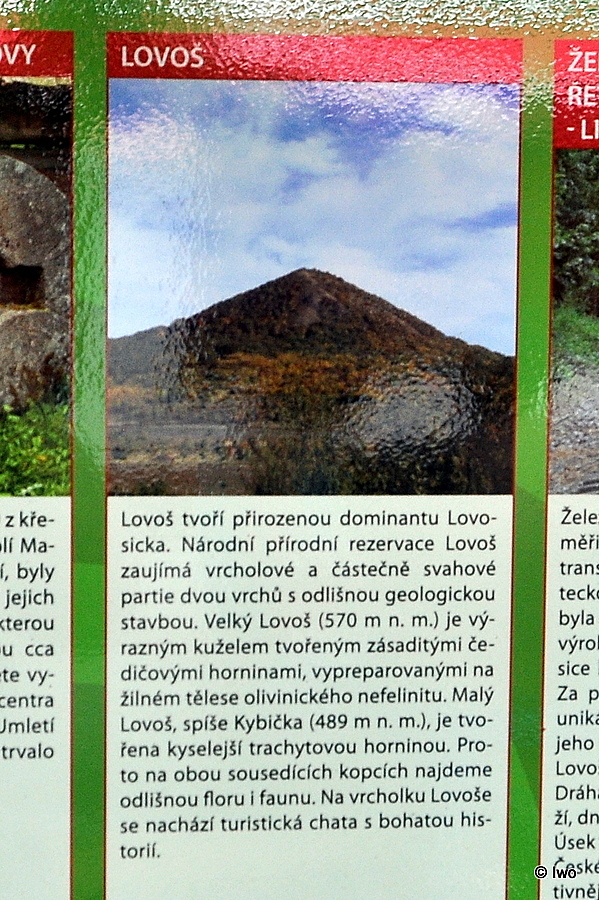Dominantní vrch nad Lovosicemi. Lovoš. Národní přírodní rezervace. Výletní místo. Turistická chata. Výhledy. A čedič.