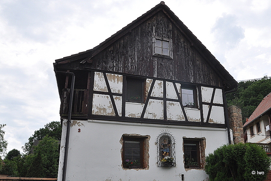 Centru obce Oparno nedaleko zdejší kaple dominuje dům čp. 3, v jehož štítové zdi ve výklenku stojí socha svatého Floriána.