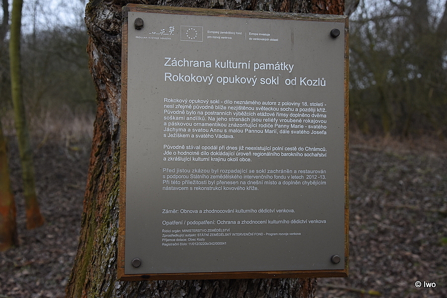 U polní cesty, která vede z Kozel směrem na Chrámce, stojí na okraji lesa kříž.