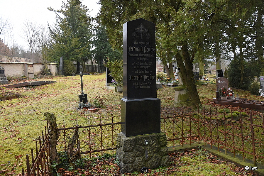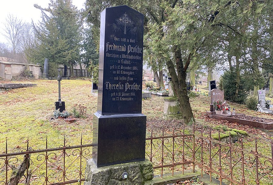 Blízko středu hřbitova v Lužici se nachází hrob rodiny Prosche.