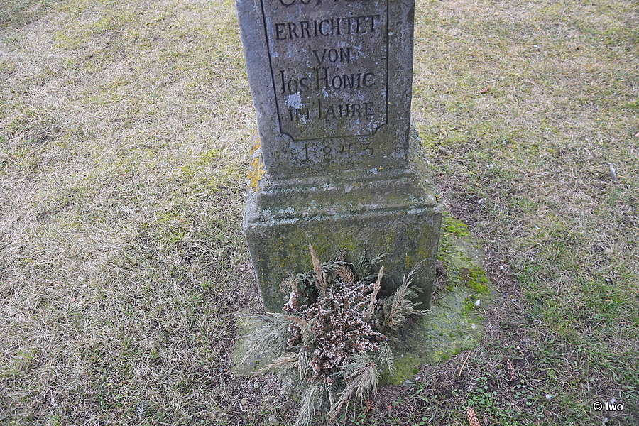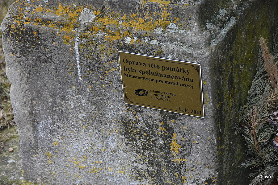Na kříži je sice cedulka o jeho opravě v roce 2011, ale jednak v podstatě neexistuje (dohledat nelze nic) a druhak stopy po opravě vzaly za své – kříž viditelně nahnutý, zcela porostlý mechem a lišejníkem…