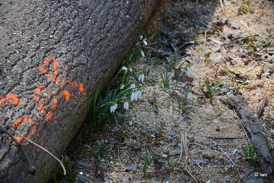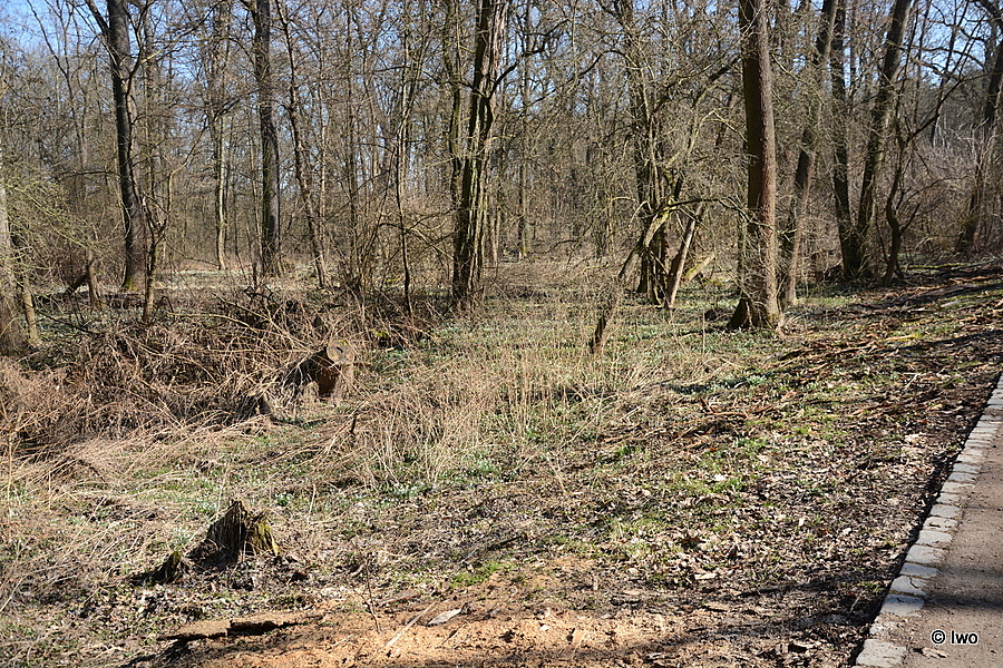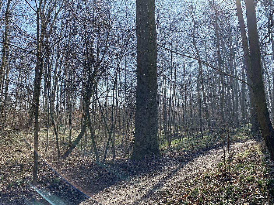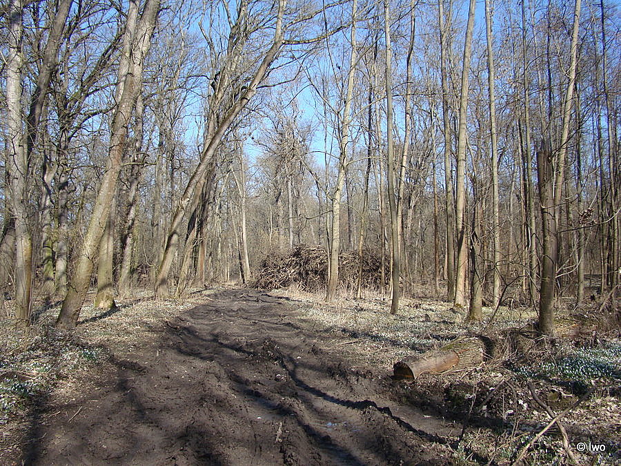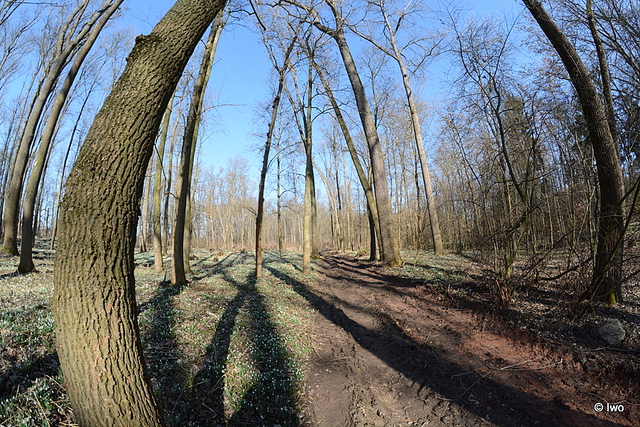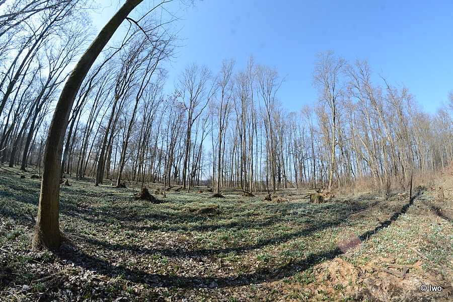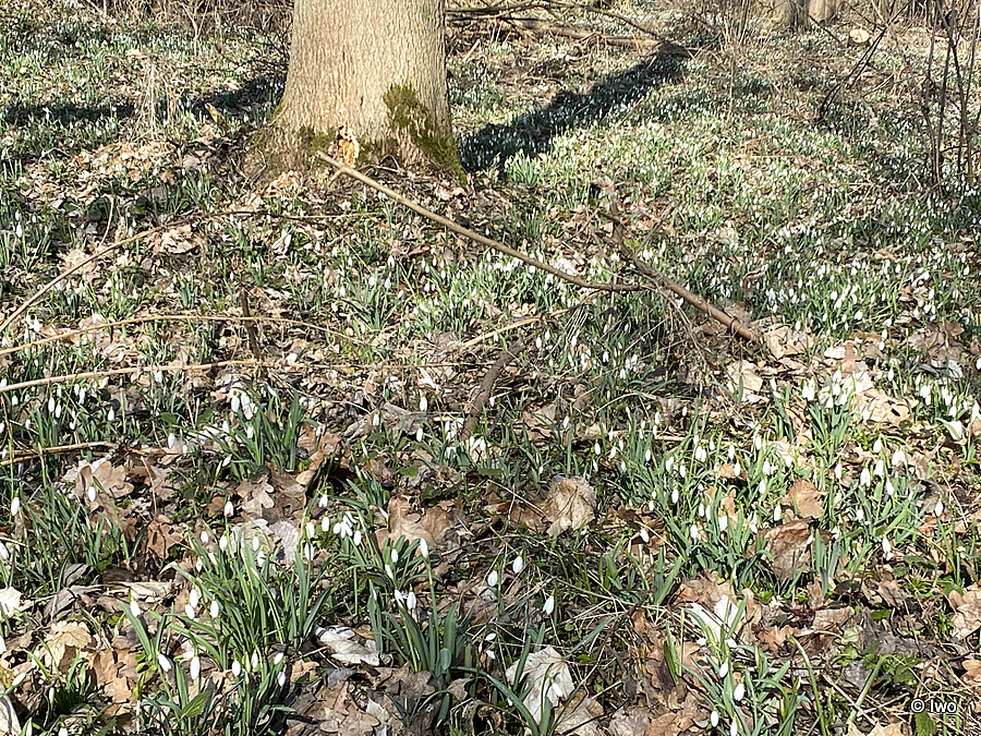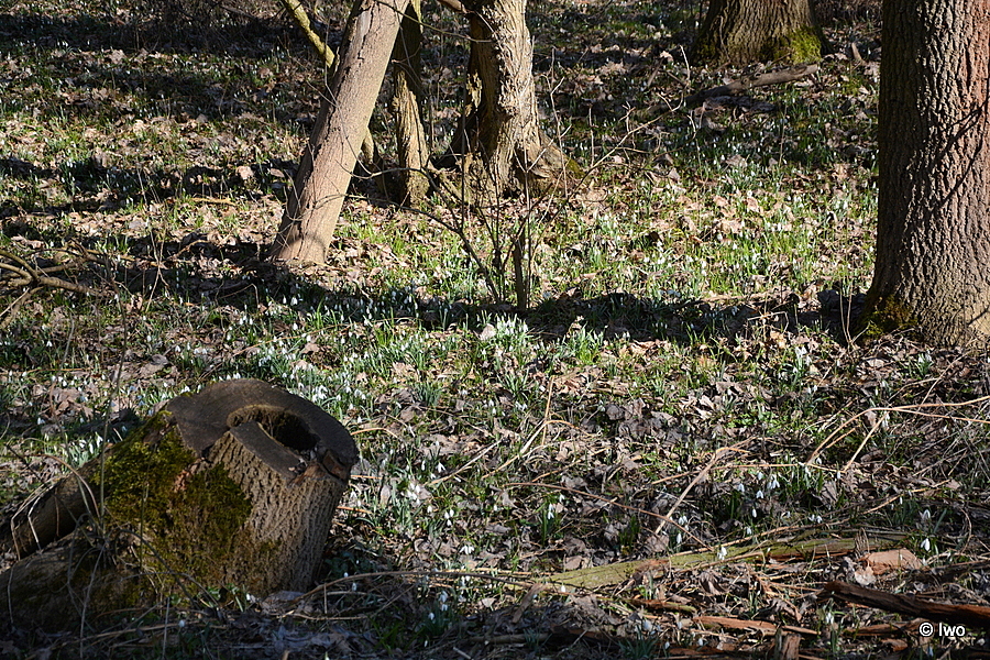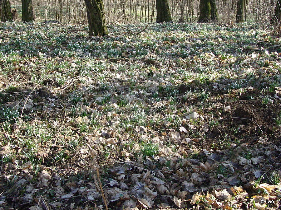 Rozlehlý lužní les protkaný cestičkami je za normálních okolností spíš jen zajímavým místem na procházky. Ovšem na jaře je lokalitou ohromující – kdo putuje do dálek za kvetoucími bledulemi, musí tady užasnout – nejde tu ale o bledule, nýbrž o sněženku podsněžník. Dosud jsem o existenci této byliny neměl tušení, což snad lze osvětlit citací z wiki: „V minulosti patřila sněženka podsněžník mezi nejrozšířenější jarní rostliny v Česku. V současné době ji řadíme mezi vzácné a částečně chráněné druhy, což je následkem především ztráty přirozeného biotopu, vykopávání zahrádkáři a trhání v době květu.“ A zbývá dodat, že já sem zamířil kvůli několika chráněným dubům.