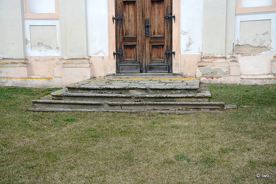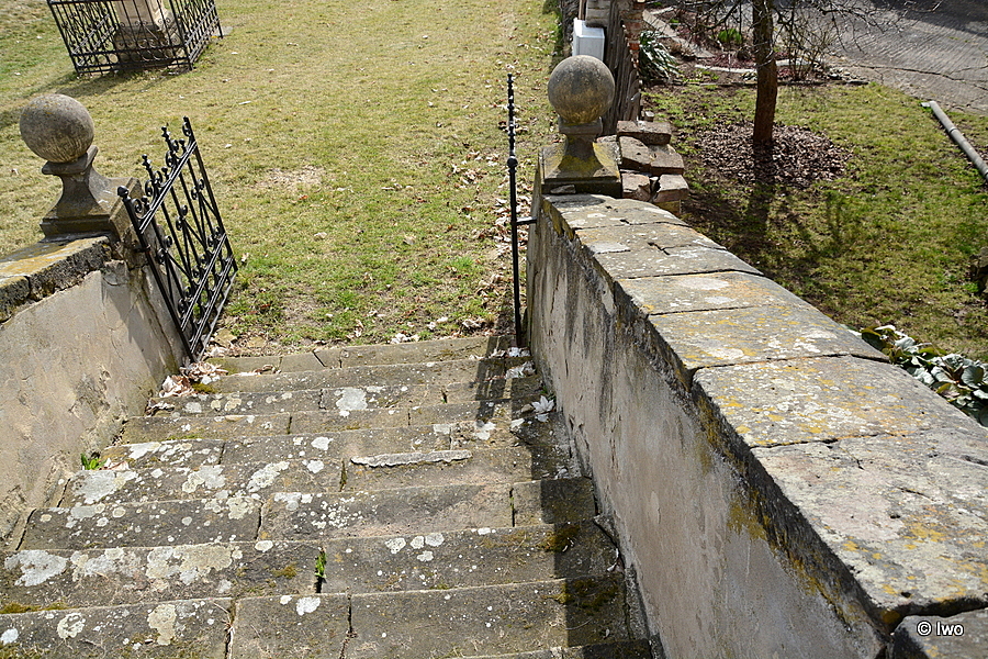 Osově umístěné jednoramenné schodiště vede na terasovitě řešený, ve svahu založený bývalý hřbitov. Je lemováno zděným zábradlím, nahoře a dole s čučky. Přístup uzavírá dvoukřídlá mřížová branka.