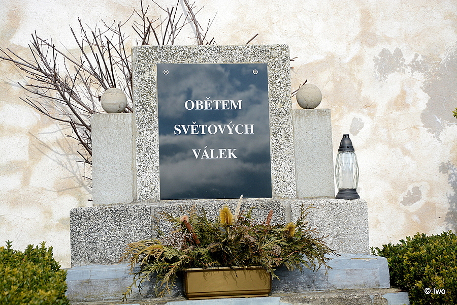 - Pamětní deska obětem 1. světové války u vstupu na hřbitov ve Veltěži