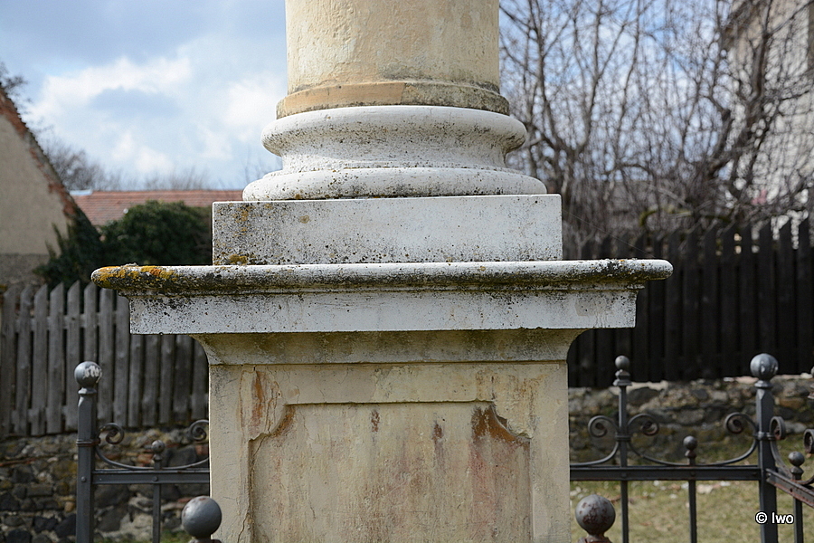 1966 – Kámen silně zvětralý (zejména podstavec a patka sloupu) a mechanicky poškozený. Zděný stupeň ve špatném stavu.