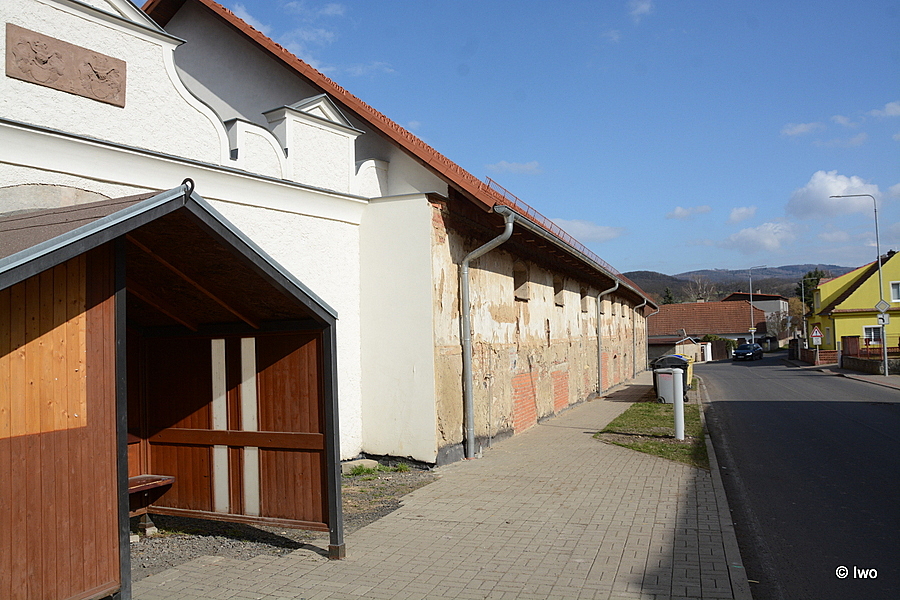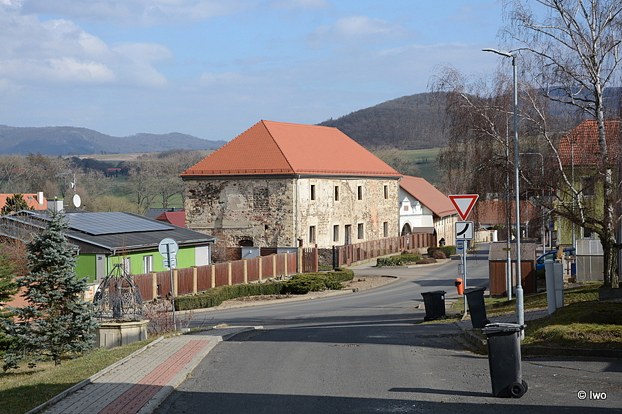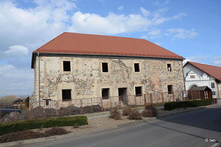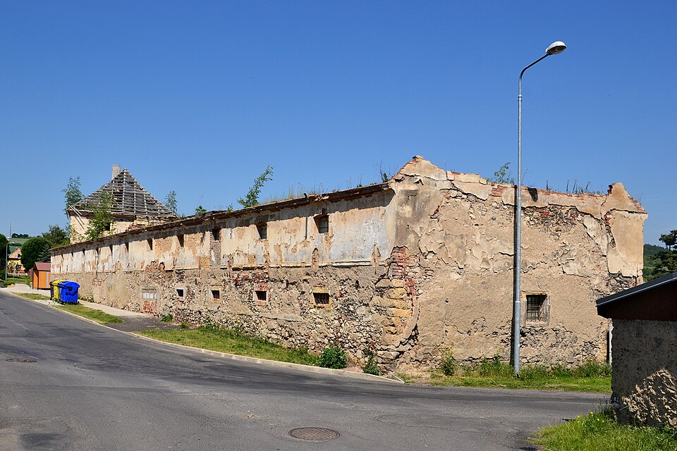Zchátralá budova renesanční tvrze ze 16. století je součástí bývalého poplužního dvora. Vedle ní dříve stála dnes již neexistující brána zdobená vlaštovčími ocasy a erby rodu Rausendorfů a letopočtem 1579.
