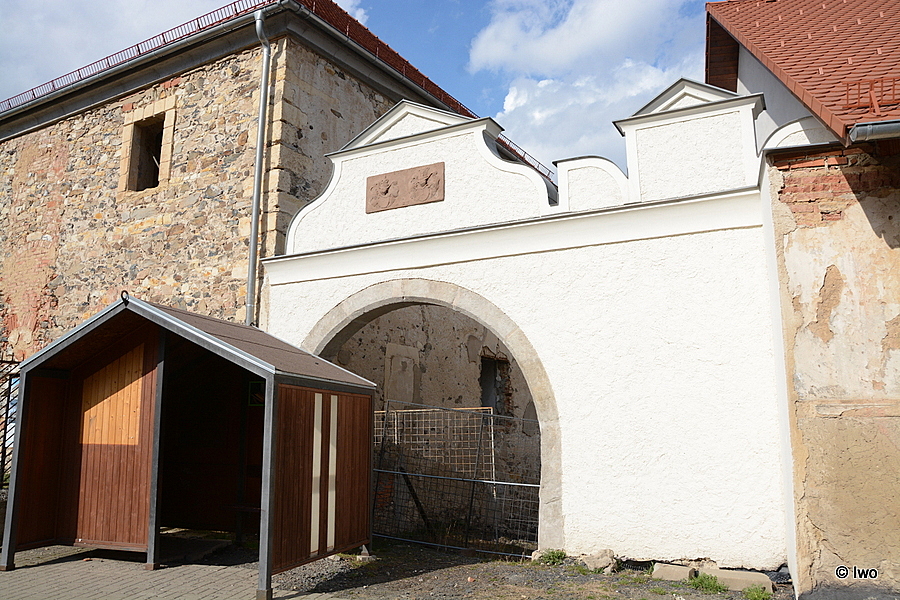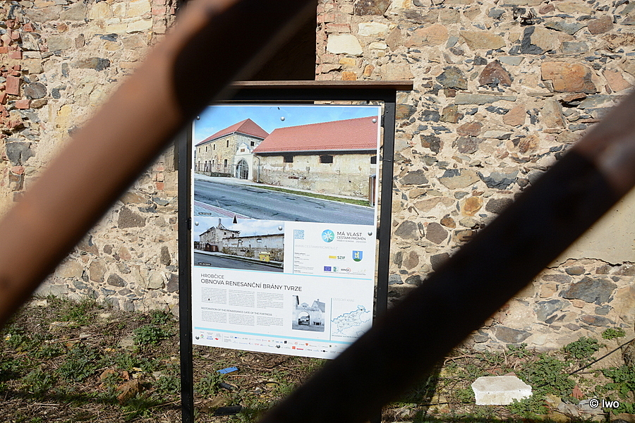 Do původní podoby je také nově opravena renesanční brána ze 16. století, která sloužila jako vjezd do areálu zemědělského družstva, jež tu sídlilo za minulého režimu. „Část portálu zboural v roce 1989 projíždějící náklaďák. Na hromadě suti jsme našli původní pískovcové ostění a bránu jsme opravili,“ podotkla Syslová.