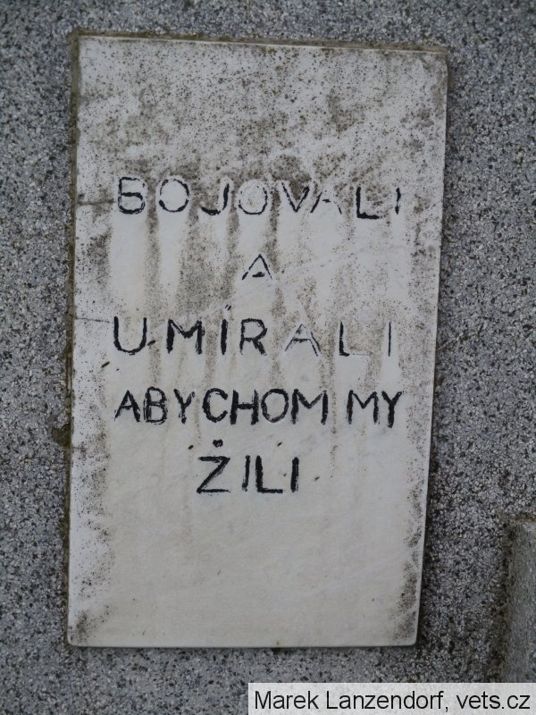 Najít tohle pietní místo nebylo zrovna snadné. Náhrobek je úplně obyčejný, bez nějakých symbolů či výrazných prvků, i sám text je velmi neutrální a vlastně nenaznačuje, komu a jaké době je věnován. A navíc došlo k výměně nápisové desky, která vypadala zcela jinak: