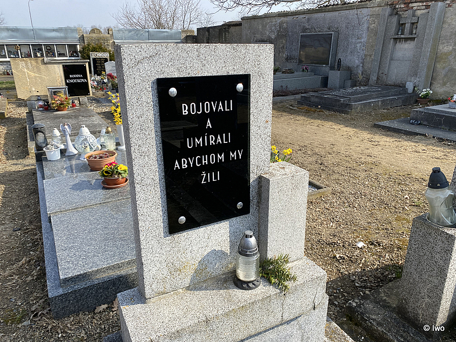 Najít tohle pietní místo nebylo zrovna snadné. Náhrobek je úplně obyčejný, bez nějakých symbolů či výrazných prvků, i sám text je velmi neutrální a vlastně nenaznačuje, komu a jaké době je věnován. A navíc došlo k výměně nápisové desky, která vypadala zcela jinak: