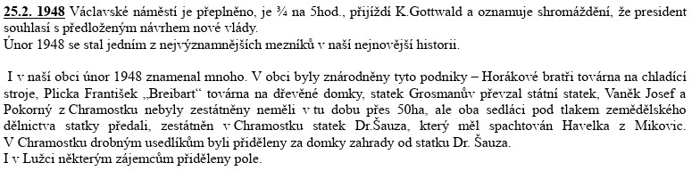 Pár zmínek v obecní kronice: