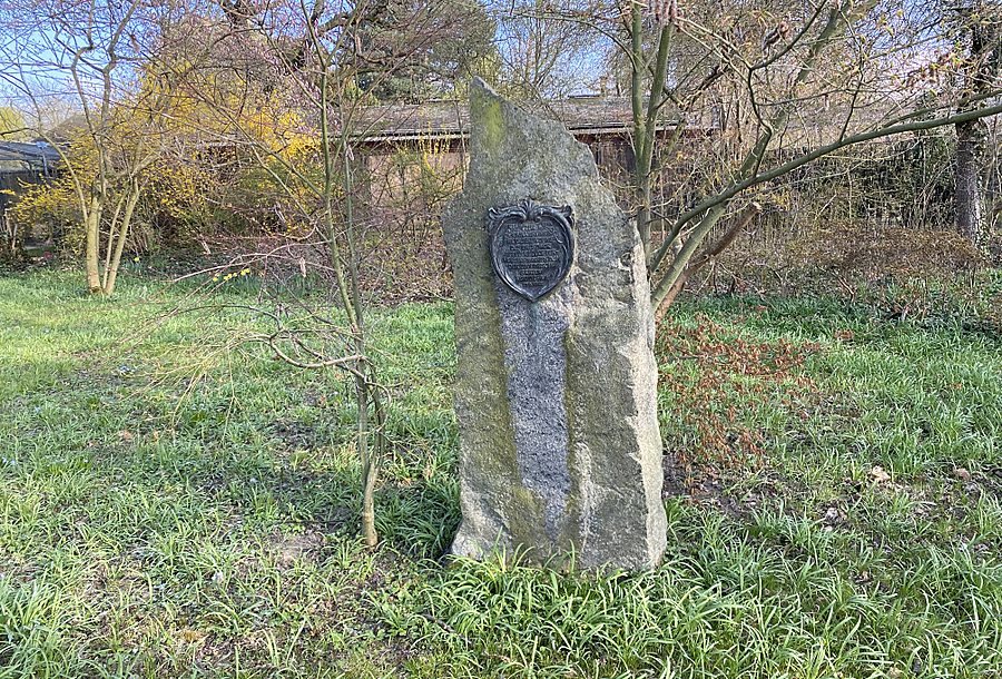 Před výběhem antilop nyala v ZOO Dresden je umístěna pamětní deska založení Drážďanské Společnosti chovatelů drůbeže.