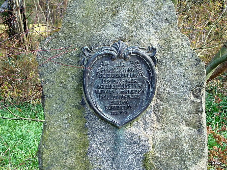 Před výběhem antilop nyala v ZOO Dresden je umístěna pamětní deska založení Drážďanské Společnosti chovatelů drůbeže.