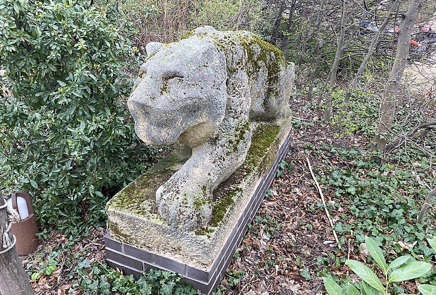 Poměrně hrubá socha kráčející šelmy, umístěná na obdélném podstavci na soklu z keramických cihel, není nijak označena a nepodařilo se mi ji objevit v žádných pramenech.