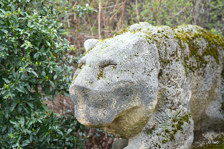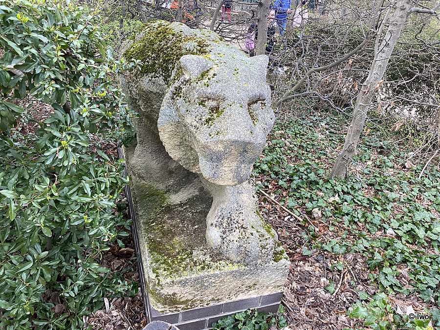 Poměrně hrubá socha kráčející šelmy, umístěná na obdélném podstavci na soklu z keramických cihel, není nijak označena a nepodařilo se mi ji objevit v žádných pramenech.