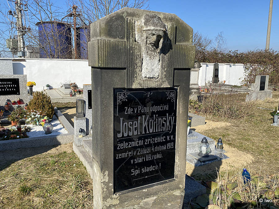 Pan Josef na náhrobku sám, připomínka důležitosti železnice v regionu: