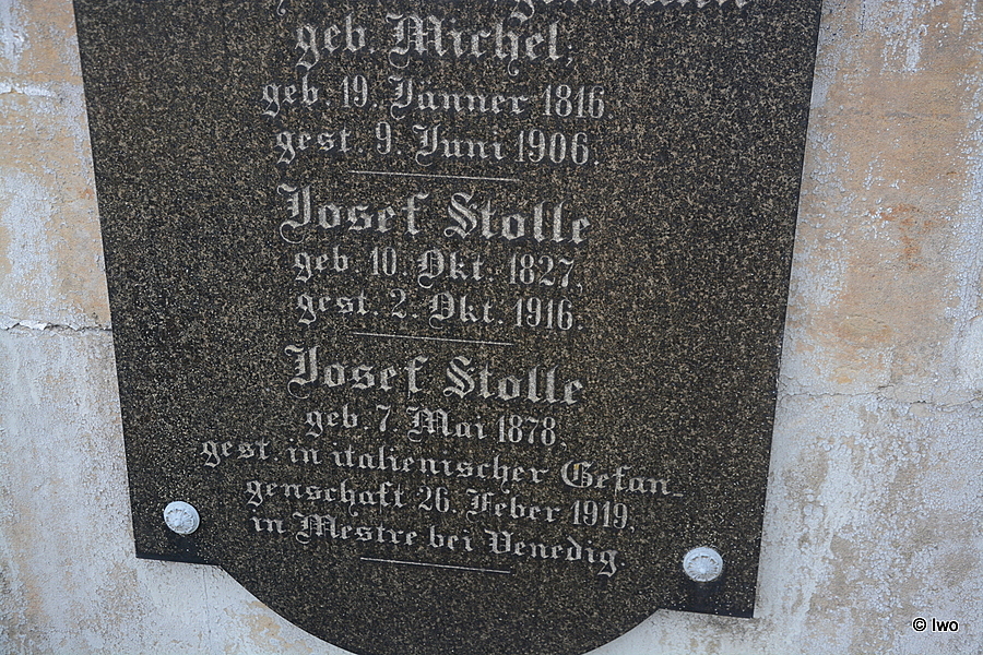 U východní ohradní zdi hřbitova v Dolním Podluží se nachází hrob rodiny Stolle, jehož součástí je i kenotaf Josefa Stolle.