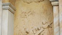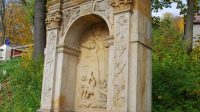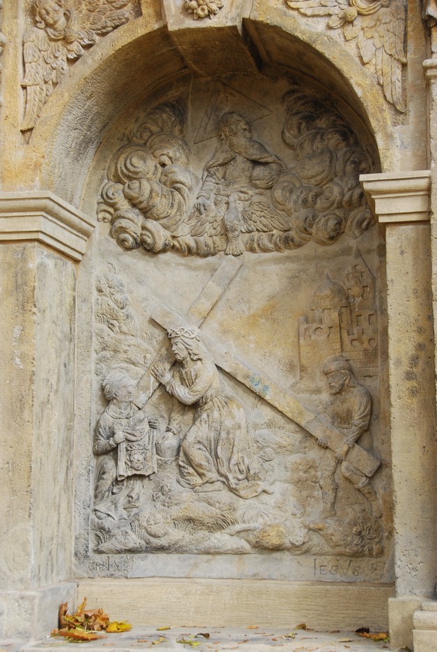 Není to s ní ale jednoduché – v onom plánu je namalováno celkem 9 křížků, ale po parku jsem běhal zmateně marně, protože všechny dostupné údaje nakonec uvádějí, že se dochovalo (či snad už původně bylo) jen 7 výklenkových kaplí. A ani ty zvyklostem a dosavadním zkušenostem neodpovídají – nejsou číslovány a jejich reliéfy nezobrazují obvyklou posloupnost příběhu, jen je v jednom z mála informačních textů obecná zmínka, že jde o výjevy z cesty Ježíše Krista na Golgotu. Najít o ní něco detailnějšího na netu je vcelku velký problém, zjevně v Kadani nemají někoho, jako je Klára M.