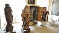 Vzhledem k historii regionu je důležitá geologie a na ní navazující hornictví či výroba skla a porcelánu (především je prezentována produkce z Horního Slavkova), k vidění je tu řada církevních exponátů. Velmi mě překvapil a potěšil vystavený domácí oltář, inspirovaný 29 zastaveními křížové cesty k Loretu ve Starém Hrozňatově – na fotce je to ten, co vypadá jako z korku. Nemůže chybět část věnovaná osudu pohraničí (od vzniku republiky po poválečný odsun). Pobaví, když obsazení Sudet v roce 1938 je tady prezentováno fotografií pochodu turnerů na varnsdorfském náměstí (viz náš FB). Značná pozornost je věnována ženskému lágru ve Svatavě a Samuelu Fullerovi, který tu natočil v jeho filmografii neuváděnou prvotinu – amatérské záběry ze zajateckého tábora v Sokolově. Nechybí ani naznačení hudební minulosti regionu (třeba nám poměrně blízká citera) či speciality v podobě flašinetu s modelem dolu, na který vyhrávali propuštění (většinou zmrzačení) horníci. A ten podivný přístroj na jedné z posledních fotografií – to je jeden z několika vystavených záchranných přístrojů – kompletní výbavy pro první pomoc v dolech.
