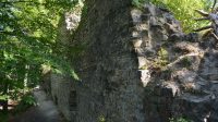 Jak již řečeno, zřícenina se nachází na trase zelené turistické značky, přímo k ní vede krátká odbočka do kopečka na skalnatý ostroh, na němž byl hrad vystavěn. Nenechte se zmást tím, co vidíte hned na první pohled – po levé ruce na skalisku sice stojí zbytky hranolové věže, ale to hlavní je schováno za mírným návrším vpravo – zbytky paláce, opěrné zdi (až 10 m výšky), velké sklepení, zčásti vytesané do skály. V blízkosti paláce se dochovala tesaná cisterna na vodu.