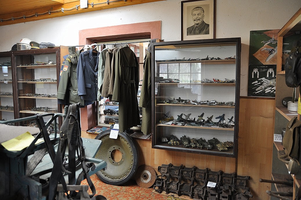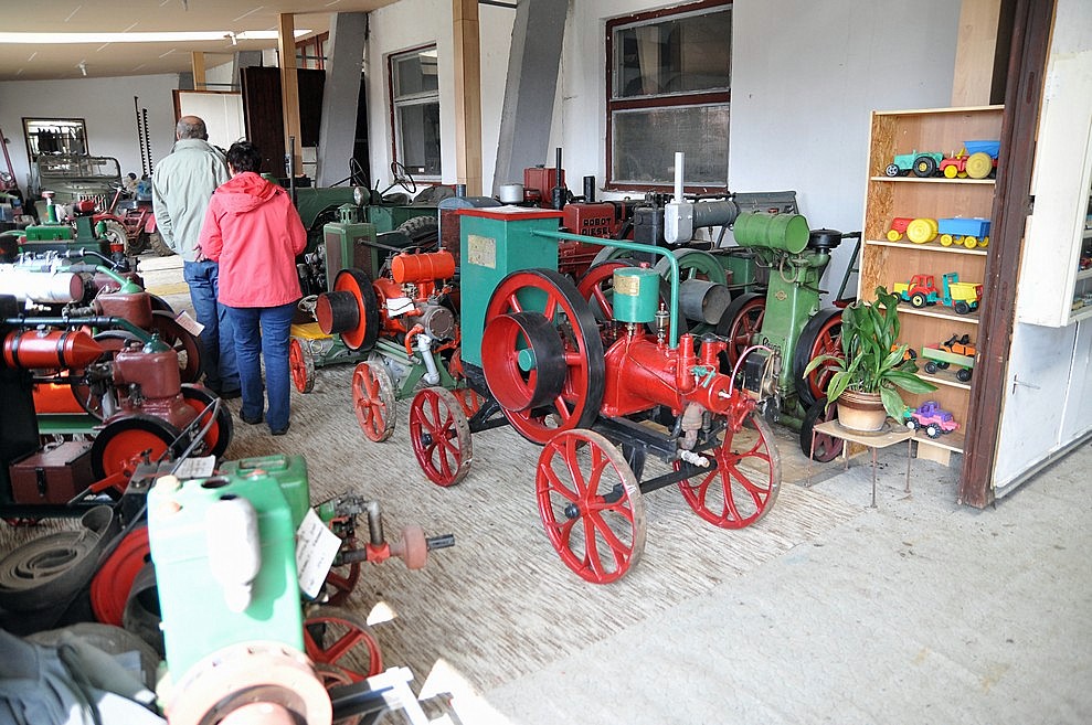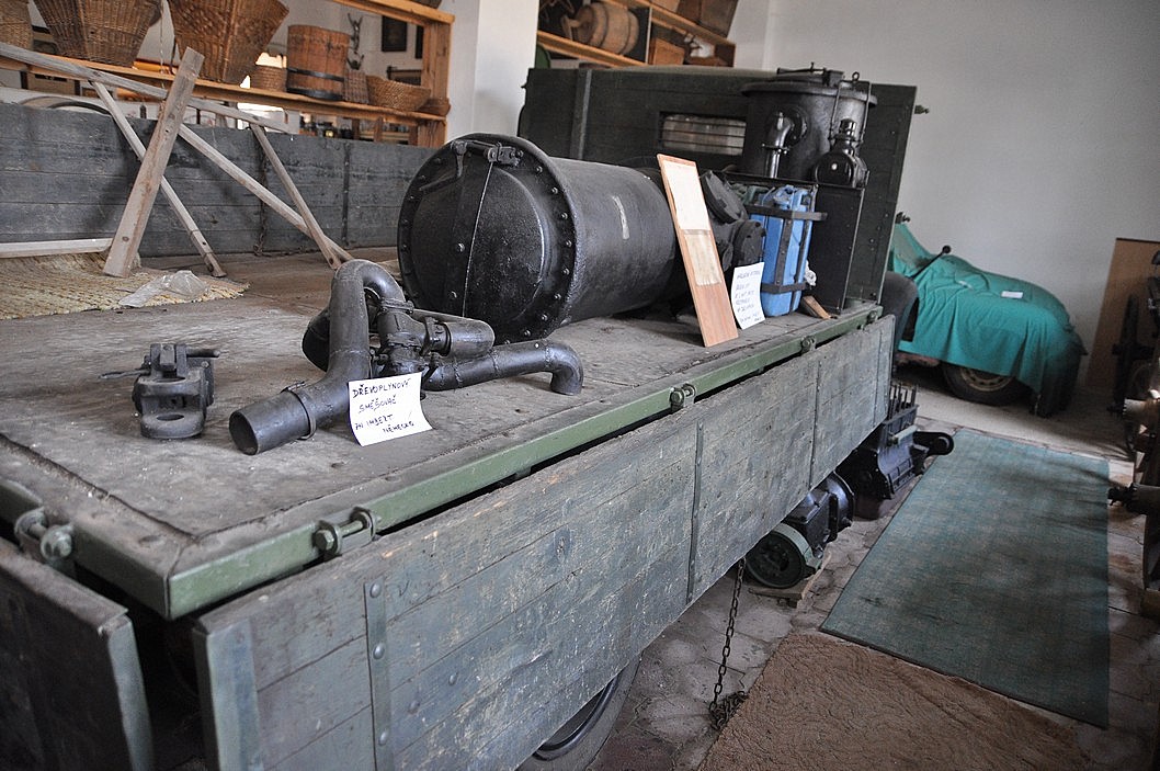 Sestup zpět dolů a přes pokladnu do druhé části – stará „elektronika“, hasičská technika, zemědělské stroje a traktory, exponáty z druhé světové války, selská jizba a vesnické nářadí, váhy, mlýnky, kamna, žehličky, pípy a zátkovačky, unikátní náklaďák na dřevoplyn (asi jediný u nás a přilehlém okolí), opět spousta hraček, opravárenská dílna… A ještě ven, kde si pod přístřeškem hoví sbírka traktorů a za nimi auta o malinko novější.