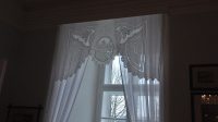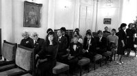 Popovídali o výzdobě obřadní síně, o níž si mnozí místní mylně mysleli, že byla obnovena při otevření prohlídkového okruhu, protože ji léta nikdo nevnímal (jak je vidět na fotkách z roku 1986, byla tam, a stejně tak i lustry). A také jsme podiskutovali o velké vzácnosti – za stolem oddávajícího pod okny stojí dvě impozantní skleněné plastiky Stanislava Libenského, které mají v dnešní době možná větší cenu než většina toho, co je na zámku vystavená. Lvu byla údajně přebroušena hvězdička na korunku a dvěma spojeným srdcím se familiérně říká tachovské prdelky. Bohužel náš fotograf stál na úrovni oddávajícího a fotil jen lidi, takže nemám jedinou fotku, zda stály tyto dva artefakty na svém místě už tehdy…