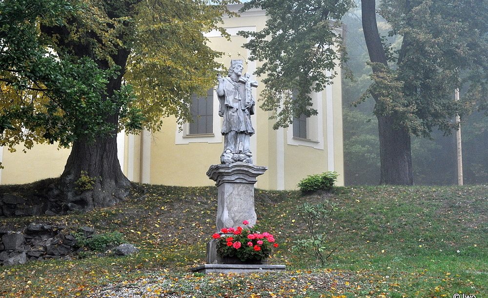 Pozdně barokní socha sv. Jana Nepomuckého z roku 1767 od neznámého autora stávala původně na levé straně bývalé cesty od farního kostela Nanebevzetí Panny Marie do vsi Stará Ves (Altdorf) nedaleko před místním hřbitovem jihovýchodně od dnes z části zaniklé vsi Svatobor (Zwetbau). Později byla socha patrně přesunuta přímo na hřbitov.