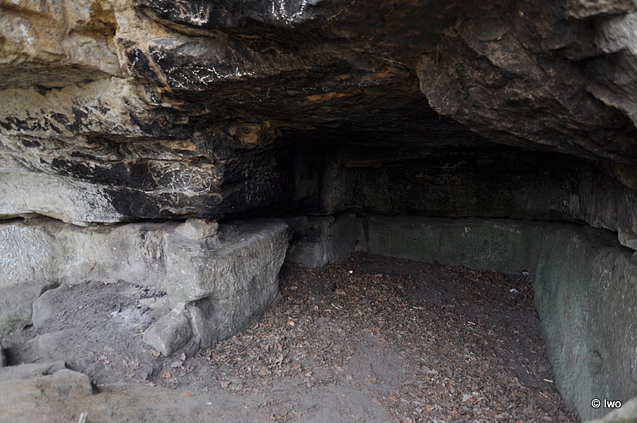 O výklenku, vytesaném ve skále kousek od vodopádu směrem k cestě, jsem nenašel nic – snad patřil k mlýnu. Stejně tak mi velkou neznámou zůstává obezděný otvor do země, na jehož dně je vidět voda, který je mezi cestou k mostu a tesanou strouhou (je snad ve skále další, skrytá strouha?).