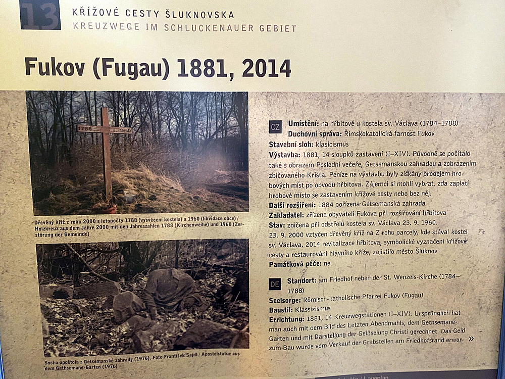 Kdo chce vědět víc, ať si sežene (dnes již mírně neaktuální) brožuru Křížové cesty Šluknovska Ivy Jabůrkové a Kláry Mágrové (str. 28 a 28) a Městem Šluknov vydanou Vzpomínku na zničenou vesnici Fukov.