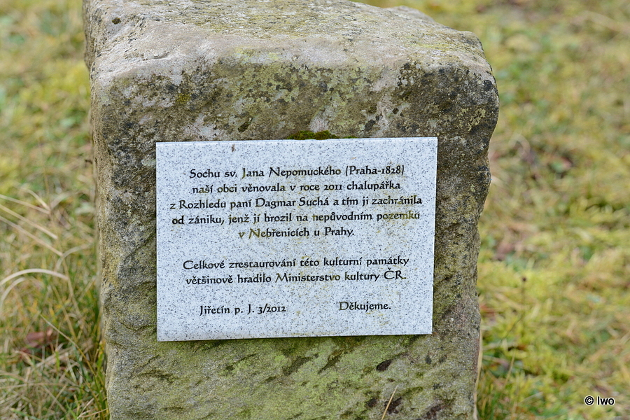 Na travnatém svahu před farou a kostelem Nejsvětější Trojice v Jiřetíně pod Jedlovou stojí pár let socha sv. Jana Nepomuckého.