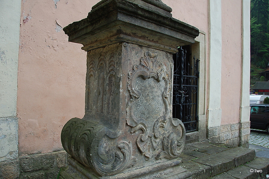 Níž na soklu takřka nad zemí je v rámečku Sant Johann Nepomuck 16. May 1756