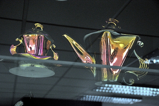 S předstihem jsme dorazili na místo, kde se o nás pečlivě starali dvě pracovnice – než jsme mohli vyrazit na prohlídku přímo do provozu přes ulici fungujícího Českého porcelánu, a.s., servírovala se káva i čaj. Infocentrum je to poněkud zvláštní – bývalá stodola, přestavěná na kino, adaptovaná z peněz EU na současnou funkci s expozicí historie porcelánu. A protože nad pravidly EU leckdy zůstává rozum stát, i tady jsme se podivili – pět let tu nesmějí nic prodávat, takže pár prospektů zdarma a vystavené knihy již zmíněného Rostislava Křivánka, které se ale dají koupit jen na místním Městském úřadě, když je otevřený. Kniha ani prodejna suvenýrů totiž ve městě prý není žádná…