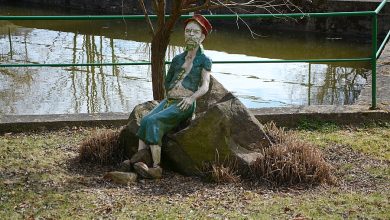 - Socha sedící dívky u jezírka ve Dvořákových sadech v Karlových Varech
