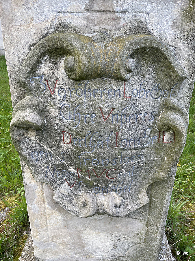 Info je na můj vkus skoupé – není citován nápis z přední strany z kartuše, v němž je jasně vidět chronogram. Necituje ho ani (tehdy ještě) Nataša Brejchová-Steinová (dnes Natalie Belisová) ve své knize Zjánštěná item zjančená léta na Děčínsku. Ale uvádí na stranách 77 a 78 jiné podrobnosti: