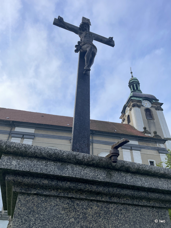 - Kříž u severní zdi kostela Nalezení svatého Kříže ve Frýdlantu