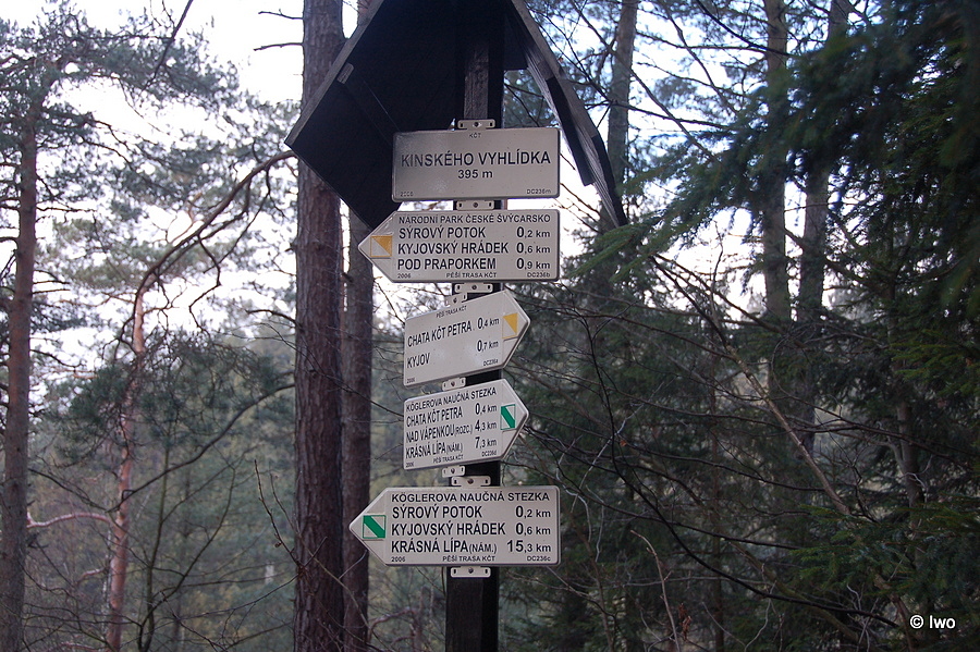 Po přeznačení cesty Kyjovským údolím na pouhé místní značení zmizela směrovka od Křinice na vyhlídku, tudíž ti, kdo nevědí a neznají, mohou jen nechápavě zírat, co za podivné schody se tu pne směrem vzhůru.