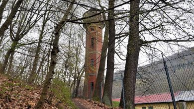 Naproti Bredovskému letohrádku u zámku Lemberk je mezi stromy schovaná dnes již nefunkční vodárenská věž.