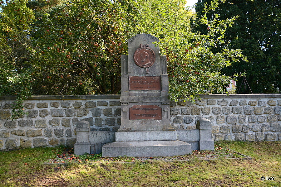 U zdi zámeckého parku ve Sloupu v Čechách u novoborské silnice stojí pomník Emanuela Maxe.
