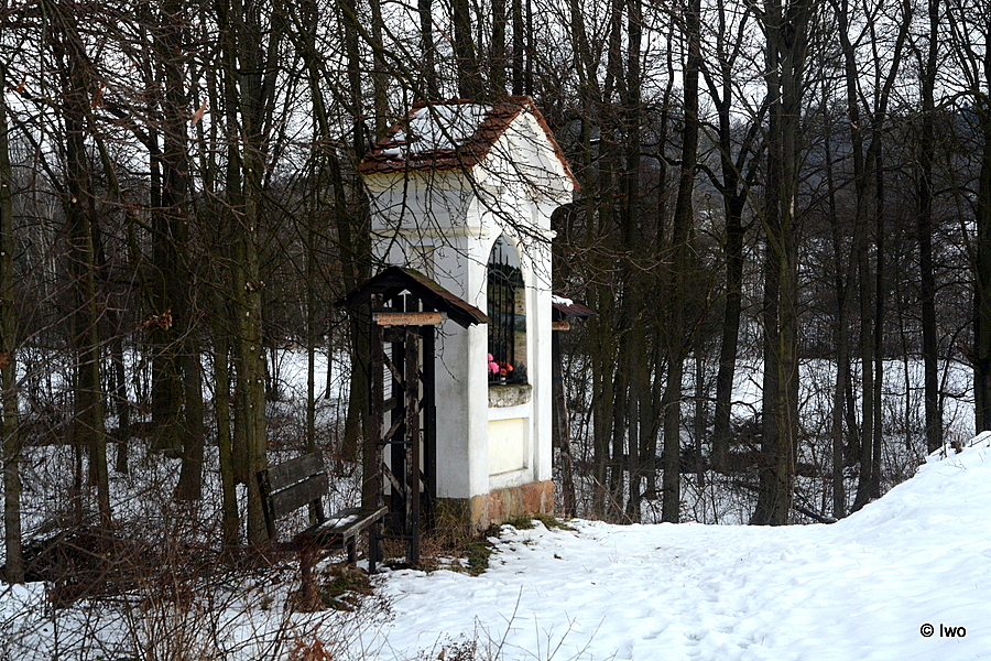 Inu, diskutovat o kvalitách zmíněné NS není ten správný čas, přístup ke kapličce ale není úplně nejjednodušší, protože to vypadá, že přilehlé pozemky jsou stavební a brzy je obsadí nové domy. Byť je kaple nabílená, tak nějak se ztrácí mezi stromy na břehu blízkého vodního toku. Alespoň že je u ní lavička a obsáhlá infocedule, byť o samotné kapli je na ní ke čtení minimum. Ono se stejně asi víc neví.