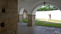 Z doby románské se zachoval severní palác (stavba z hladkých kvádříků na žulovém bloku) a původní obvodová hradba s románským portálem v místech dnešní brány. Tento úsek dnes tvoří vnitřní stěnu renesanční arkádové chodby. Románský je také hlavní portál z nádvoří do paláce.