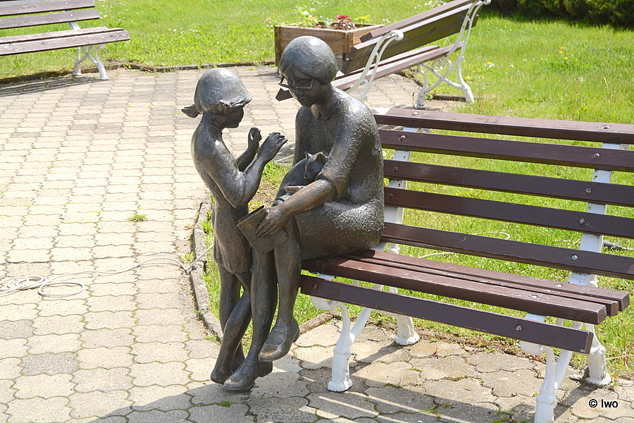 U kruhového objezdu na Tyršově náměstí v Novém Boru je malý parčík, kde v sousedství kašny se sochou na jedné z laviček sedí plastika babičky s vnučkou.