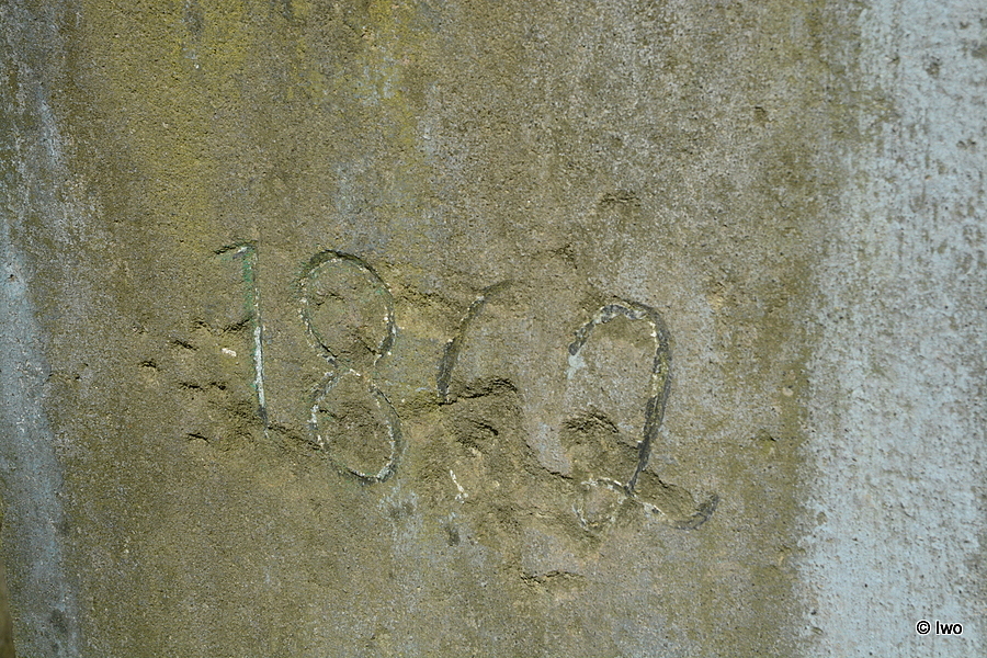 Před podstavcem blok, sloužící zřejmě jako klekátko. Na samostatném soklíku spodní část podstavce stejného půdorysu, s několikanásobně ustupující horní hranou, zdobenou lištami. Na něm stojí samotný korpus podstavce. Vpředu obdélná mělká nika s plastickým rámem a 6 hlubokými otvory – zřejmě zde byla umístěna nápisová deska. V ploše výklenku a nad ním jsou rytá písmena, ale zřejmě se jedná o novodobé vandalství. Boční stěny hladké, na zadní straně poškozený letopočet 1862. Horní hrana skrývá záhadu – není tu totiž ani stopy po tom, že by tu byl upevněn nějaký kříž. Buď chybí hlavice, která ho nesla, nebo se nejednalo o klasický kříž… Vzhledem k tomu, že nelze nikde najít jakékoli info, záhada dál záhadou zůstane.