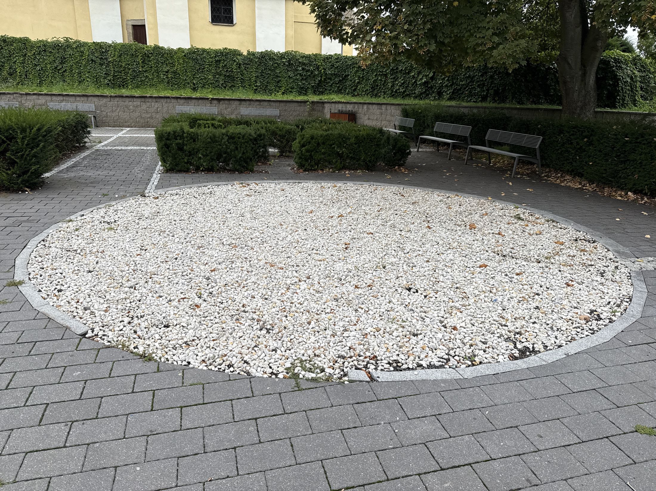 Kašna zanikla někdy mezi lety 2023 a 2025. Jak ukazuje foto v galerii map.cz, zbyl jen kruh v dlažbě vysypaný kačírkem…