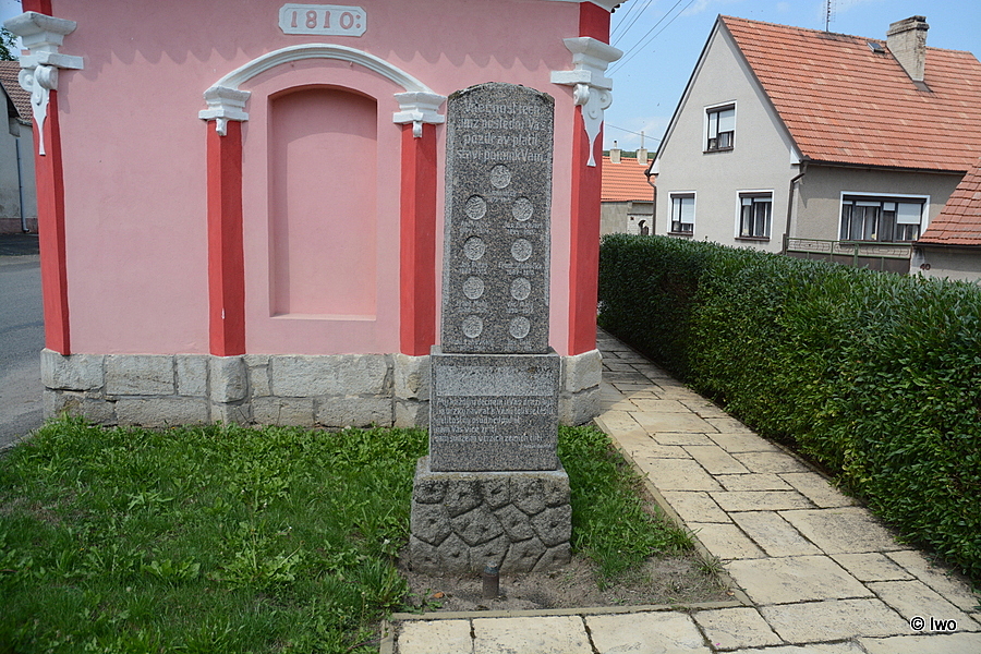 Za rekonstruovanou kaplí na návsi v Břežanech nad Ohří stojí pomník obětem 1. světové války.