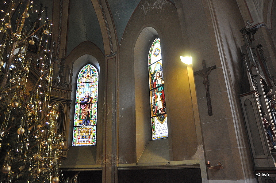 Výše citovaný text říká, že kostel je udržovaný, leč je potřeba toto tvrzení brát s rezervou. Zmiňovaná nika nad vchodem v podstatě neexistuje, na fasádě je z ní jen torzo, z něhož trčí kovový hák, opadává i okolní omítka. Stavbu ohrožuje vzlínající vlhkost, na opěrných pilířích je vysoko vidět zasolení, ve spodních částech (občas i výš) opadává omítka. Na zadní (severní) straně kostela je patrný pod vitrážovým oknem zbytek reliéfu poháru s hostií a svatozáří, ale moc už nezbývá. Při bližším pohledu na stěny jsou vidět trhliny ve zdivu (např. nad vchodem v reliéfu tří propojenýc kruhů, umístěném v lomeném oblouku nade dveřmi).