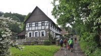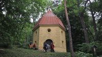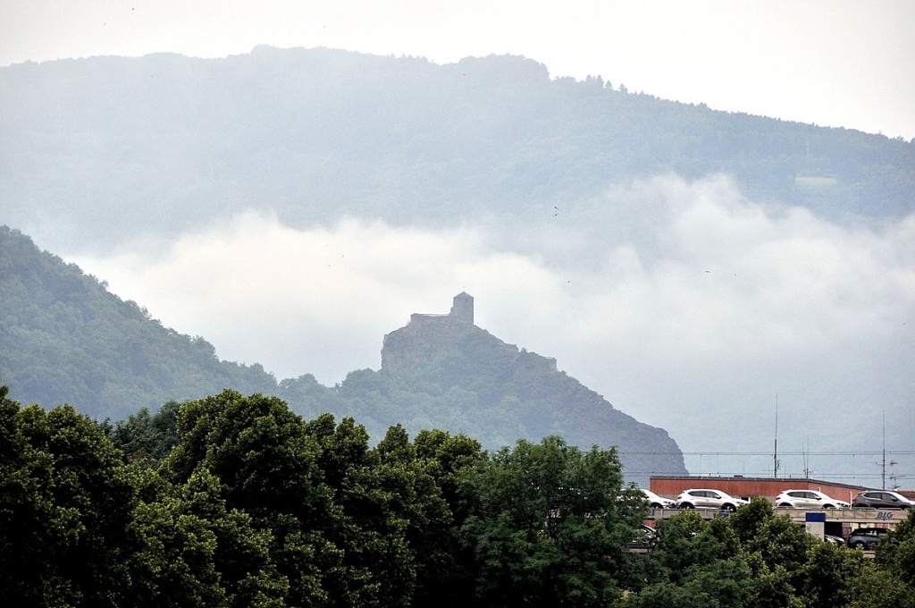Tři kříže, vztyčené na skalisku, odkud je ten nejlepší výhled, prý měly „přetlouct“ původní význam místa – zde i na vedlejším ostrohu totiž bývalo keltské hradiště. Pršet přestává, výhled se opět zlepšuje a mě se rosí objektiv. Když začneme sestupovat dolů k řece, pochopíme, proč kalvárie – úzké poničené cestičky, kde to klouže, všude přerostlé větve, zasahující do cesty a obličejů. Tady by si to zasloužilo nejednu brigádu.