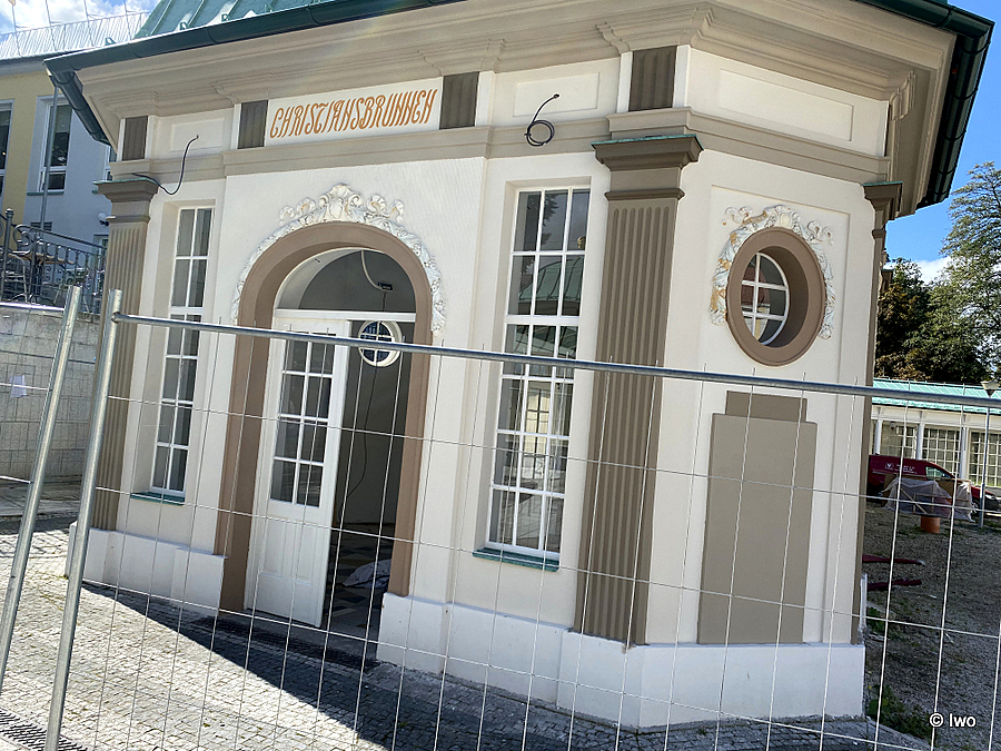 Pavilon Kristiánova zřídla s pitnou síní ve východní části kolonády se stavebně proměňoval. Současný protáhlý osmistěn s mansardovou střechou s prosklenými dveřmi ve střech hlavních stěnách a oválnými okénky v kosých stěnách vznikl na konci 20. let minulého století.